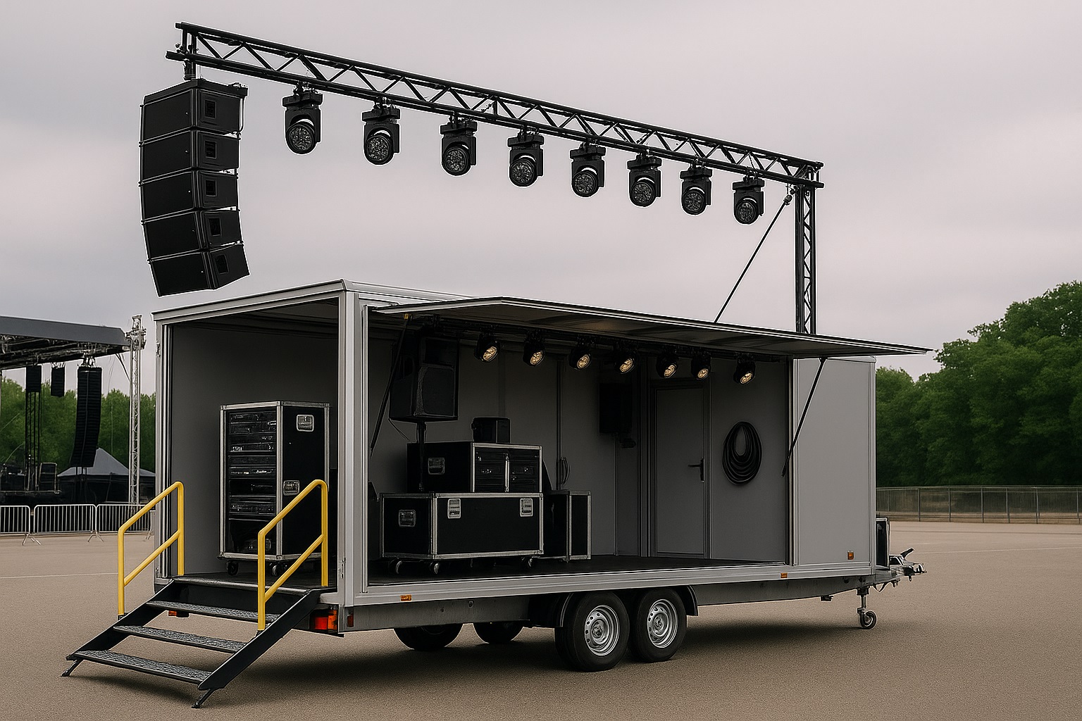 Przyczepa nagłośnieniowa PRO to najwyższej klasy mobilne rozwiązanie przeznaczone do obsługi dużych wydarzeń masowych – koncertów plenerowych, festiwali, eventów miejskich, pokazów i wieców publicznych. Dzięki swojej zabudowie, zaawansowanej infrastrukturze elektrycznej oraz możliwości montażu pełnowymiarowych systemów liniowych i oświetleniowych, stanowi profesjonalną bazę techniczną do pracy w każdych warunkach. To przyczepa stworzona z myślą o firmach technicznych, agencjach eventowych oraz operatorach scenicznych, dla których liczy się niezawodność, mobilność i kompleksowość.